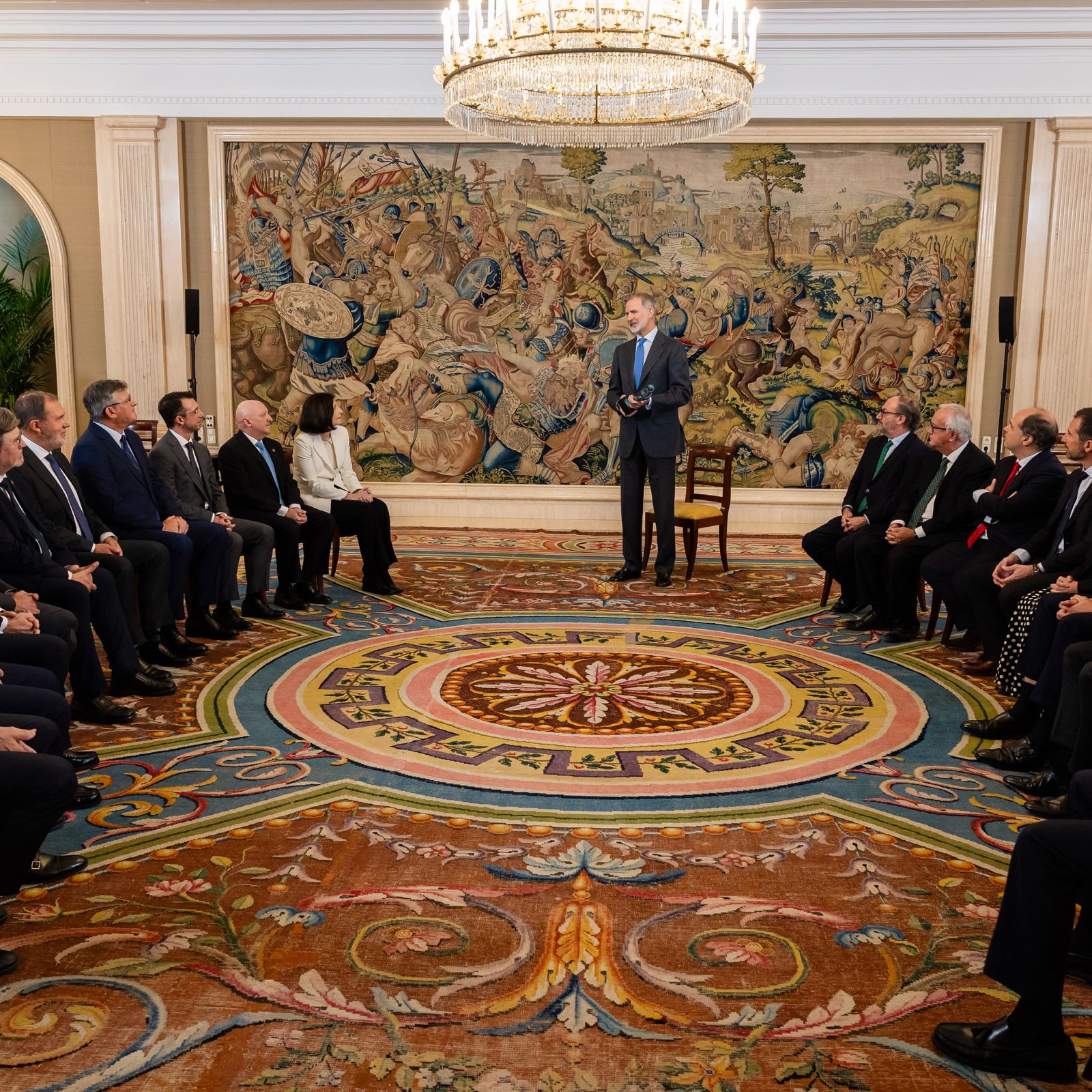 Madrid, 10 de octubre de 2025. El Rey Felipe VI ha recibido hoy en el Palacio de La Zarzuela el Premio Fides Grandes Valores en su I edición del Consejo General del Notariado, a través de su Fundación Notariado, en reconocimiento a la labor ejemplar de la Corona como garante de la unidad de España, la estabilidad institucional y la defensa de los principios constitucionales
